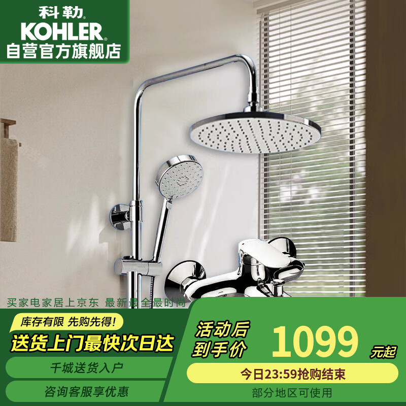 科勒(KOHLER)淋浴花洒套装三出水淋浴柱圆形顶喷多功能可升降76536T价格:1299.00元!