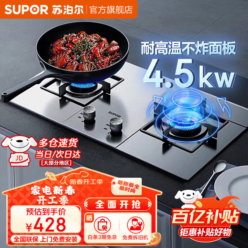 苏泊尔(SUPOR)燃气灶家用天然气灶不锈钢液化气灶双灶台式嵌入式两用灶具NS21 【管道天然气】4.5KW聚能猛火价格:396.90元!