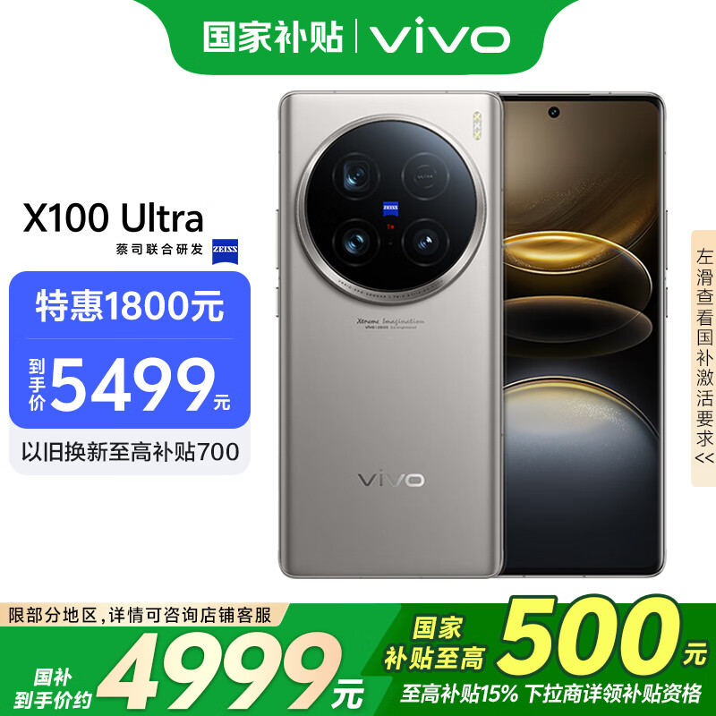 vivo X100 Ultra 16GB+512GB 钛色 补贴 蔡司2亿APO超级长焦 一英寸云台级主摄 拍照 AI 手机价格:7299.00元!