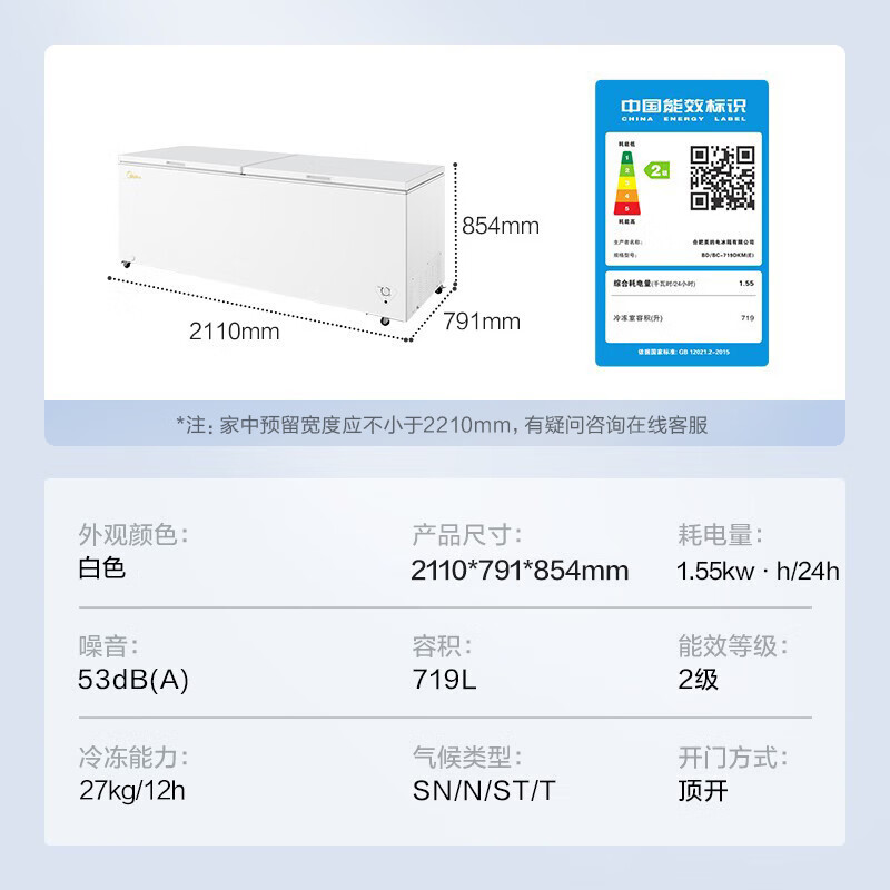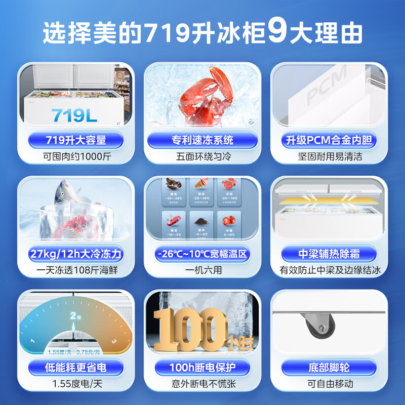 美的(Midea)719升双顶开家用大冰柜全冷冻冷藏转换冷柜卧式冰箱 BD/BC-719DKM(E) 以旧换新价格:3699.00元!