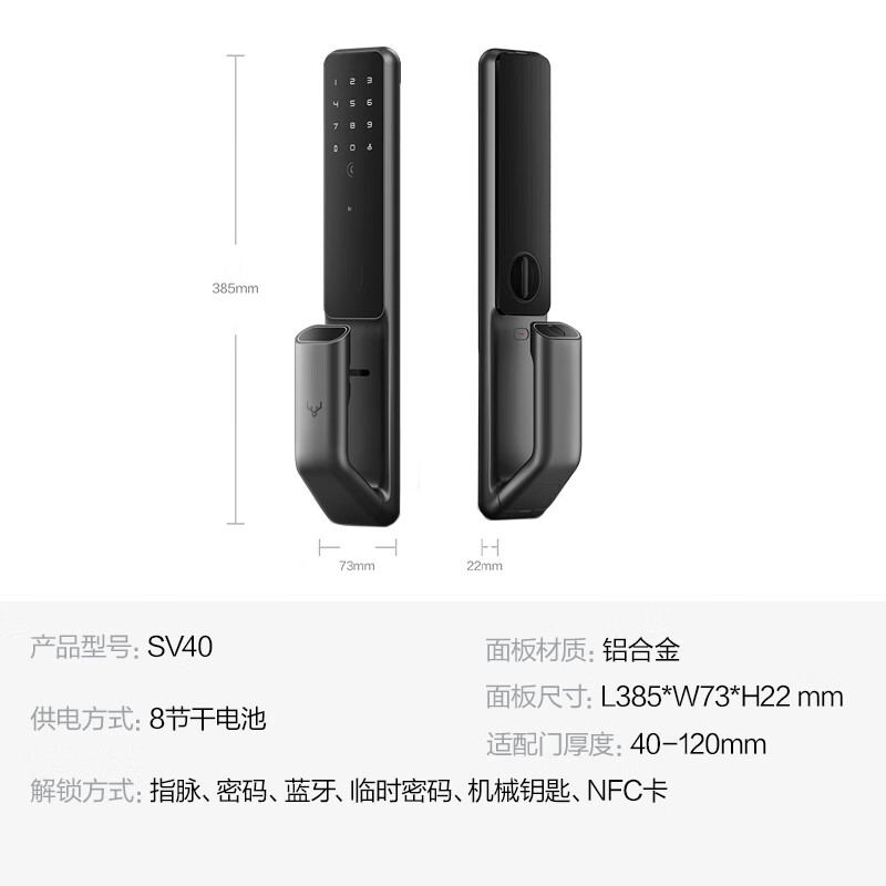 开锁方式:APP,NFC,临时密码,密码,蓝牙,钥匙,指静脉