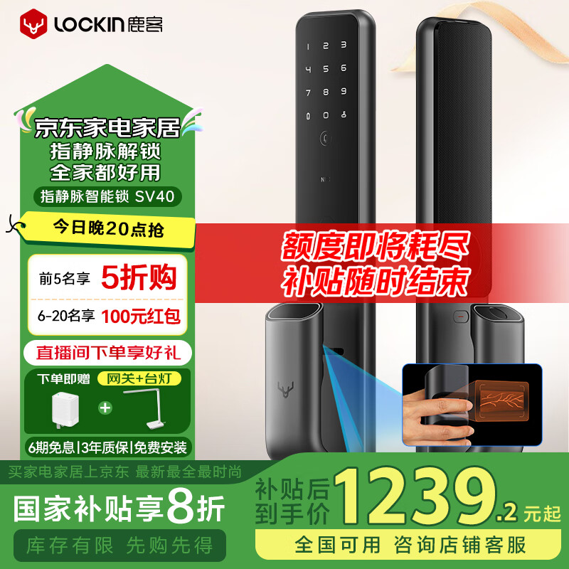 鹿客(lockin)指静脉全自动智能门锁密码锁指纹锁电子锁入户门APP智能联动SV40价格:1549.00元!