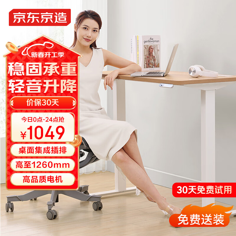 京东京造电动升降电脑桌 书桌 学习桌 单电机1.2m原木色价格:1149.00元!