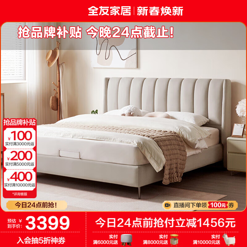 全友家居 现代简约风科技布艺床软包床主卧室双人大床1.8米家具105207价格:4855.71元!