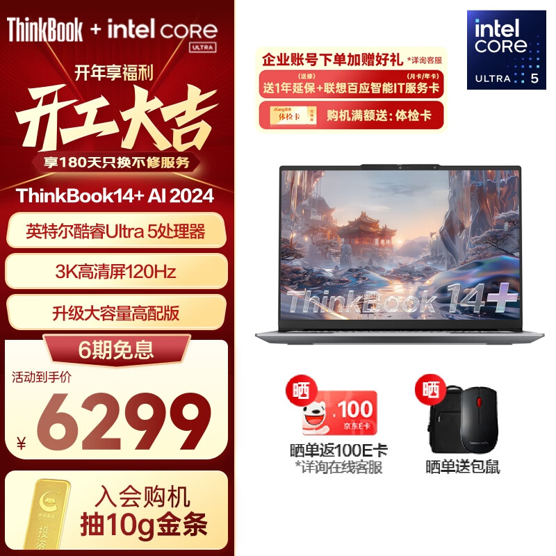 ThinkPad联想ThinkBook 14+ 2024 AI全能本 英特尔酷睿Ultra标压处理器14.5英寸笔记本电脑学生办公轻薄本 Ultra5 32G1T 3K 00CD价格:6299.00元!