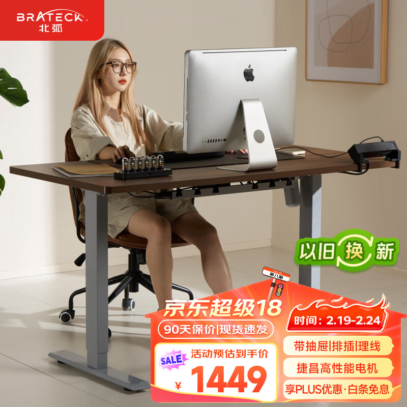 Brateck电动升降电脑桌 北弧办公学习桌电竞升降书桌 S2摩卡棕1.4米价格:1999.00元!