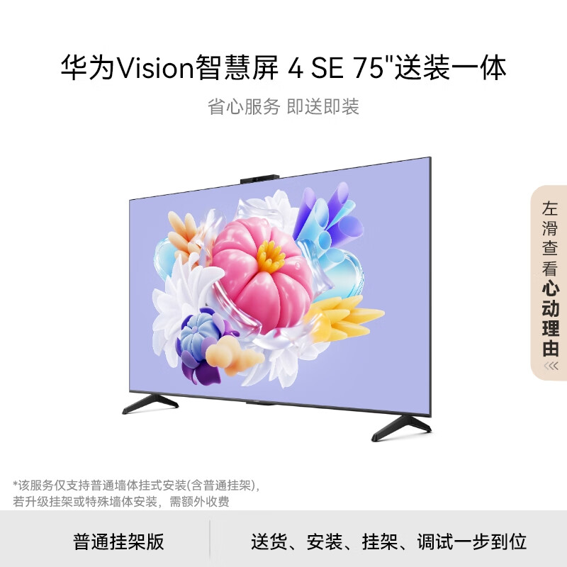 华为Vision智慧屏 4 SE 75英寸【包安装版】固定挂架送装一体 4K超级投屏 超高清液晶游戏电视机价格:3798.00元!