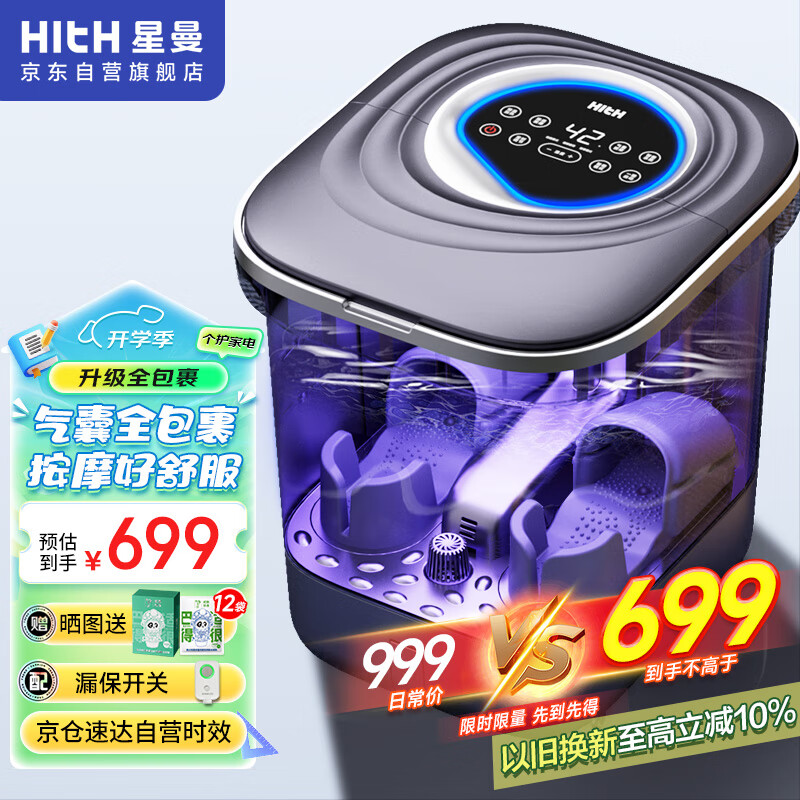 HITH泡脚桶全包裹气囊按摩足浴盆 全自动加热恒温杀菌高深桶足浴泡脚盆 送父母三八妇女节礼物YMZ-W6价格:999.00元!