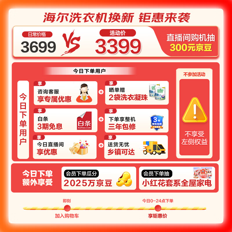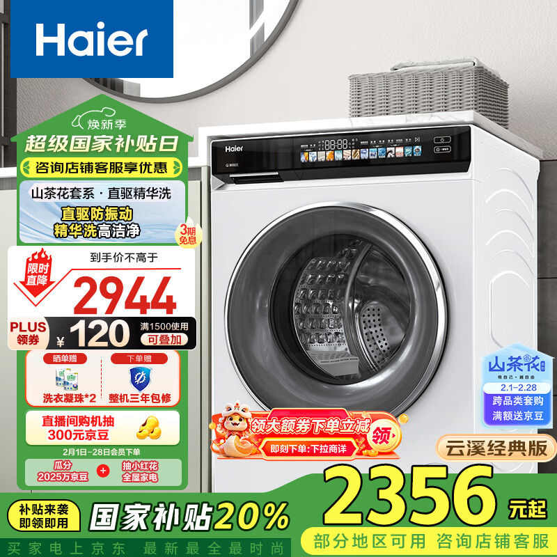 海尔(Haier)山茶花系列 滚筒洗衣机全自动单洗 10公斤EG100BD176PROW 家电补贴 以旧换新 超薄价格:3399.00元!
