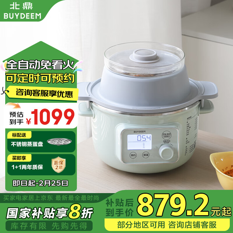北鼎(Buydeem)家用迷你电煮锅电火锅多功能全自动预约多用途锅【浅杉绿G37 含炖盅+陶瓷蒸蛋盘】价格:1099.00元!