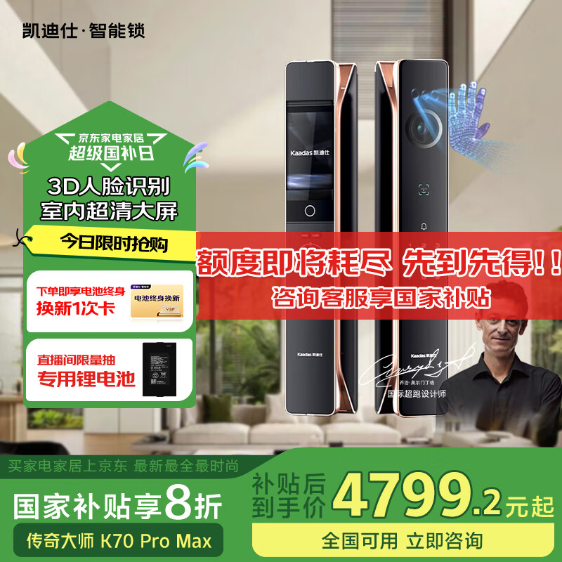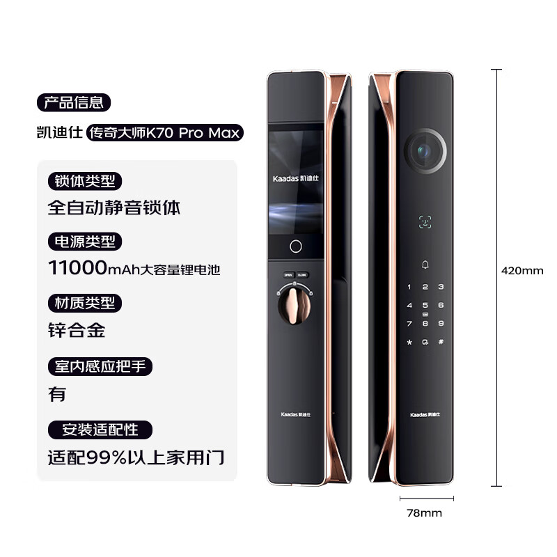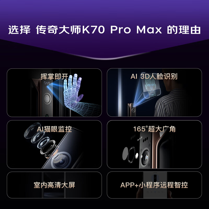 凯迪仕(kaadas)智能门锁掌静脉 猫眼智能锁 传奇大师K70 Pro Max价格:5999.00元!