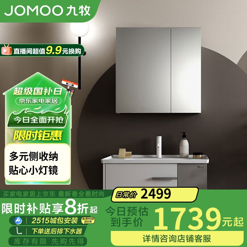 九牧(JOMOO)浴室柜陶瓷一体盆奶油风洗脸盆柜组合右侧收纳80cm A2716-147H-1价格:1899.00元!
