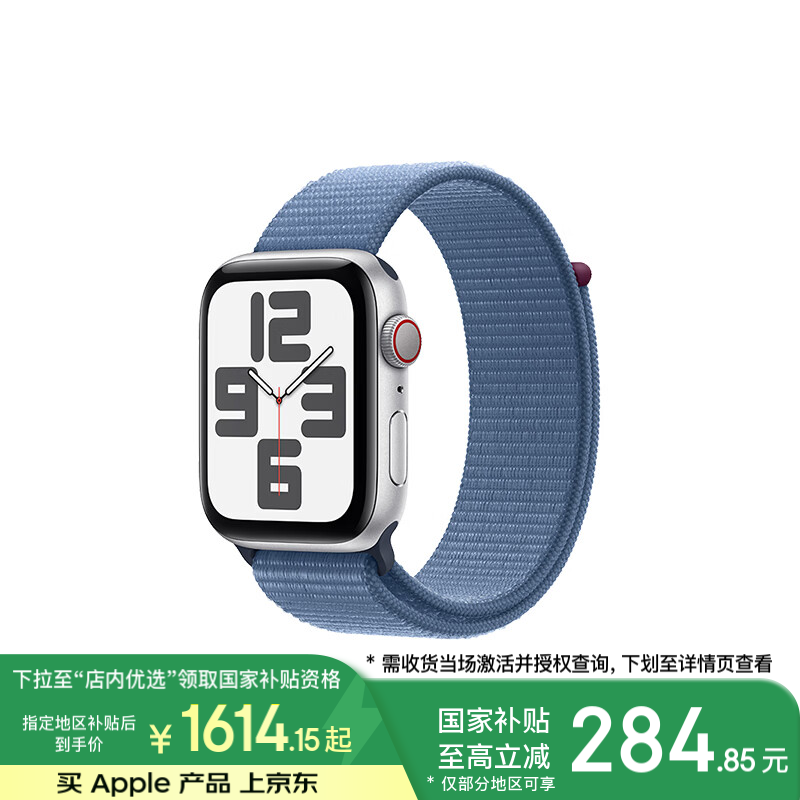 Apple Watch SE 智能手表GPS + 蜂窝款44毫米银色铝金属表壳凛蓝色回环式运动型表带MRGG3CH/A价格:1899.00元!