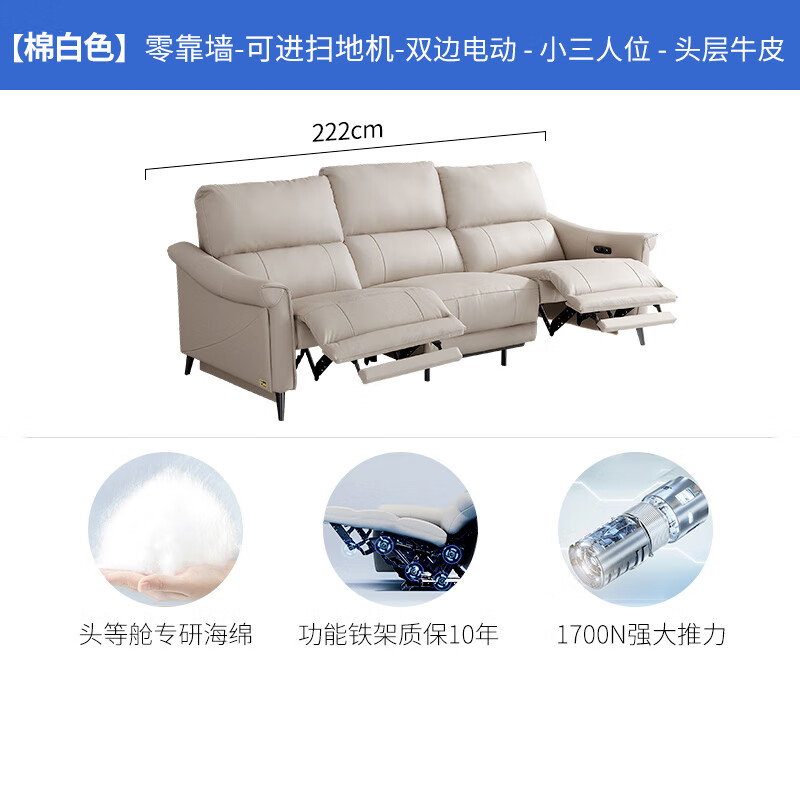 1、沙发很好很喜欢,两边都有电机位,可以充电相当于两个贵妃椅,而且可以加长减短。东西收到,很满意!真的是超级好的卖家,解答疑问不厌其烦,细致认真,关键是东西好,而且货物发得超快,包装仔细,值得信赖!