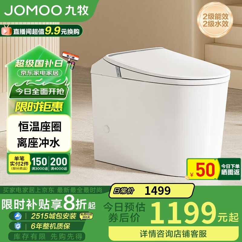 九牧(JOMOO)轻智能离座冲水恒温座圈虹吸马桶坐便器400坑距SQ5342-SA-CJM400价格:1259.00元!