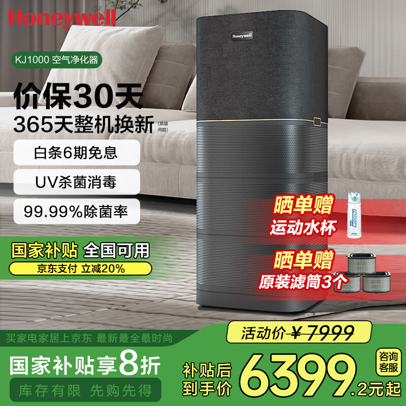 霍尼韦尔(Honeywell)空气净化器除甲醛细菌流感病毒 卫健委备案消毒机h-max 大空间速净【家电补贴】KJ1000F-P22B价格:7999.00元!