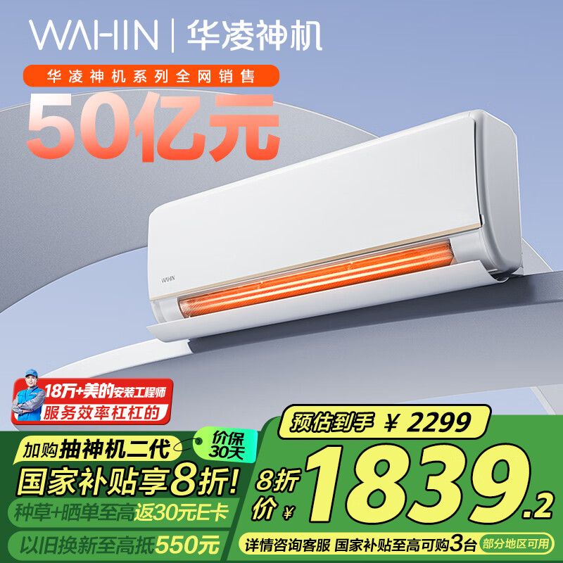华凌空调 大1.5匹 新一级能效 变频冷暖 超大风口卧室空调挂机以旧换新 KFR-35GW/N8HE1价格:2299.00元!