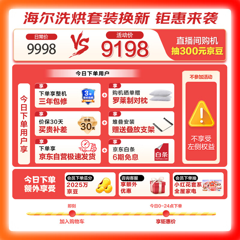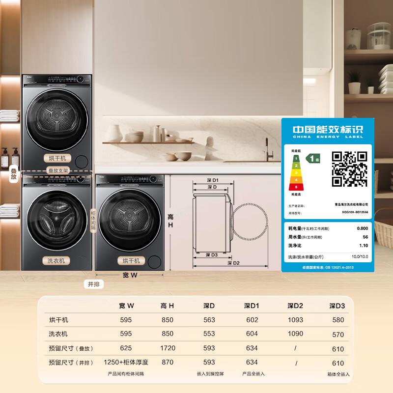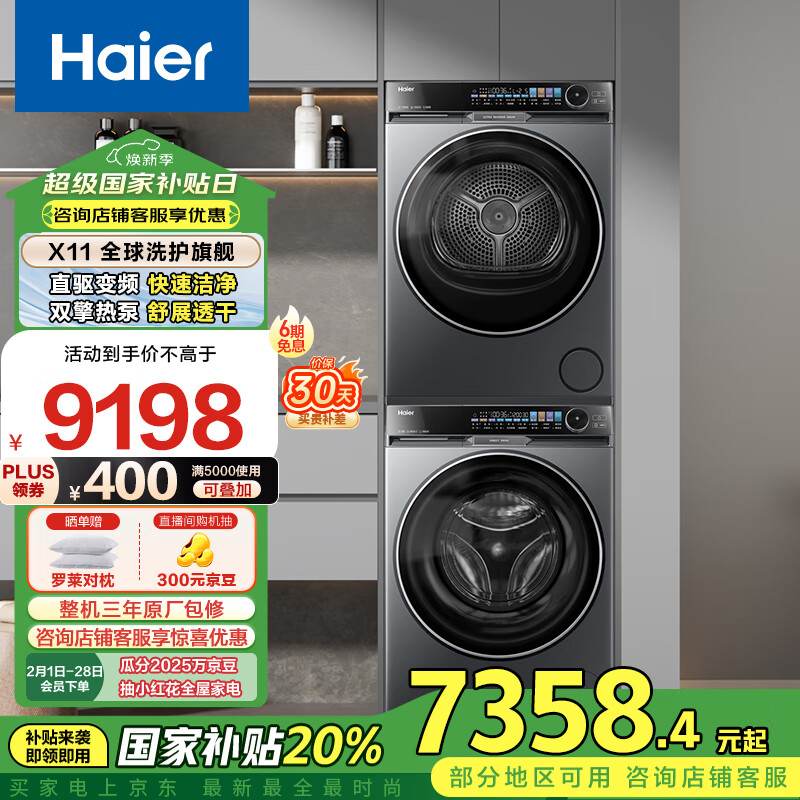 海尔(Haier)X11洗烘套装 10KG滚筒直驱洗衣机+双擎热泵烘干机家用 专业洗护 556+556以旧换新 家电补贴价格:9198.00元!