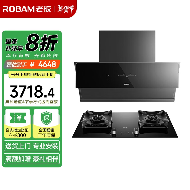 老板(Robam)抽油烟机大吸力家用油烟机三面拢烟变频烟机燃气灶灶具烟灶套装24风量吸油烟机28D3S+51B0A天然气价格:4528.00元!