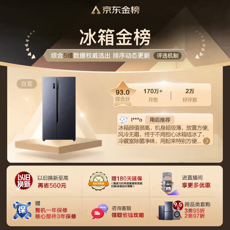 4、家里的旧冰箱智能效果不太好了,趁着618搞活动赶紧换一台,冰箱款式颜色都很大气
