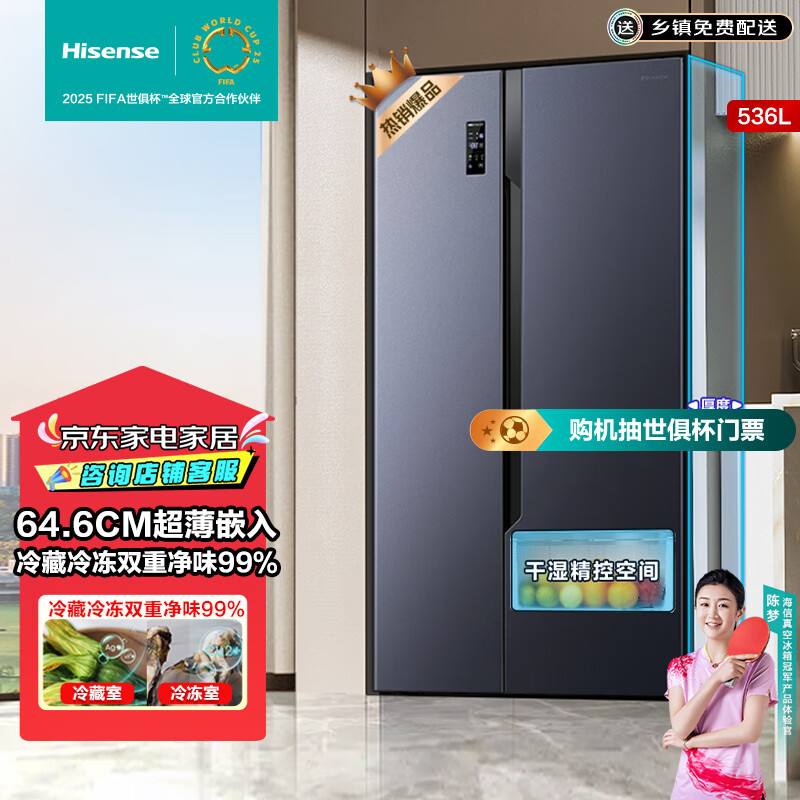 海信(Hisense)电冰箱双开门冰箱一级能效536L大容量超薄无霜家电补贴以旧换新BCD-536WFK1DPUT价格:2799.00元!