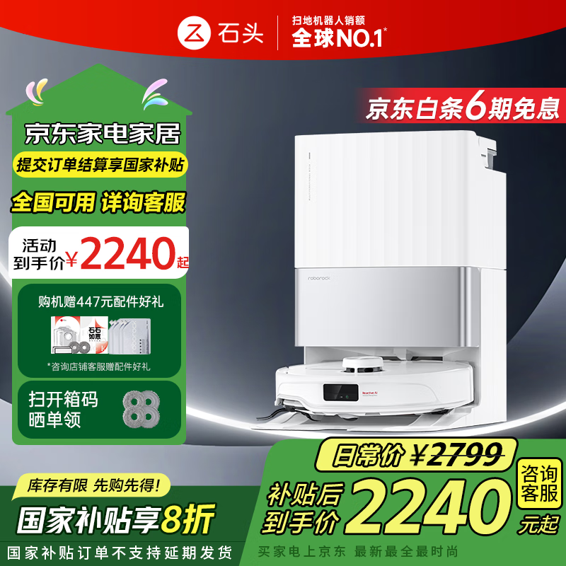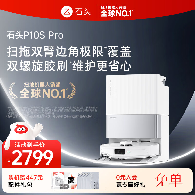 石头(roborock)扫地机器人扫拖一体 P10S Pro 扫拖洗烘一体机 自动集尘热水洗拖布烘干补水擦地拖地 A1160RR价格:2799.00元!