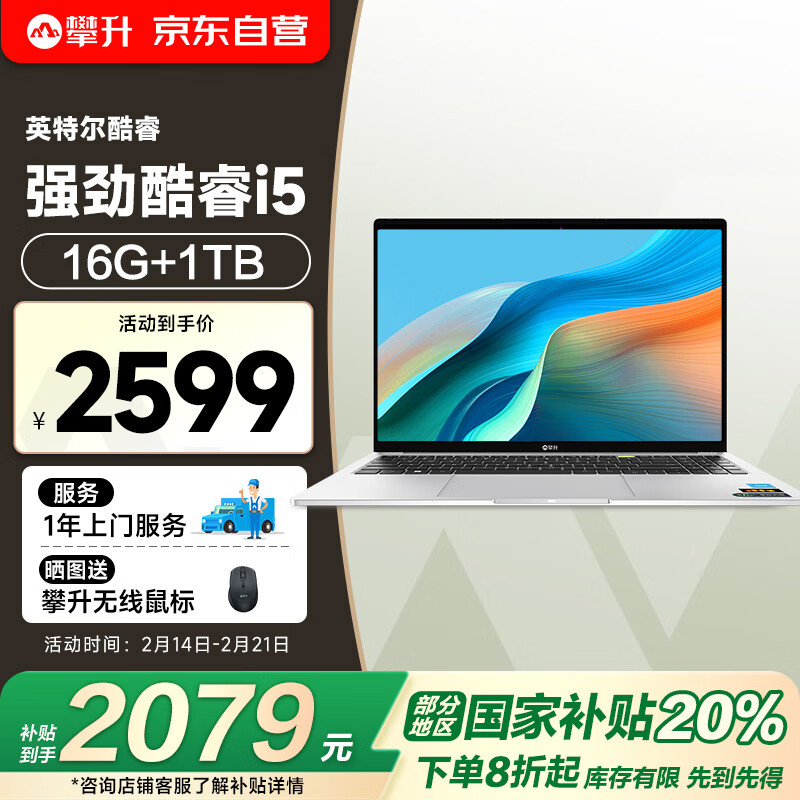 攀升笔记本电脑高性能轻薄本16英寸暴风龙P3 学生电脑笔记本游戏本 (英特尔酷睿i5 16G 1T护眼屏)价格:2599.00元!