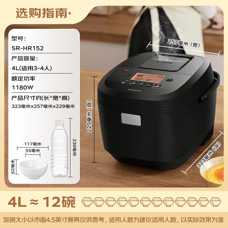 松下(Panasonic)电饭煲家用3-4人多功能IH电饭锅远红外加热煮饭锅智能预约一级能效4升大容量SR-HR152价格:699.00元!