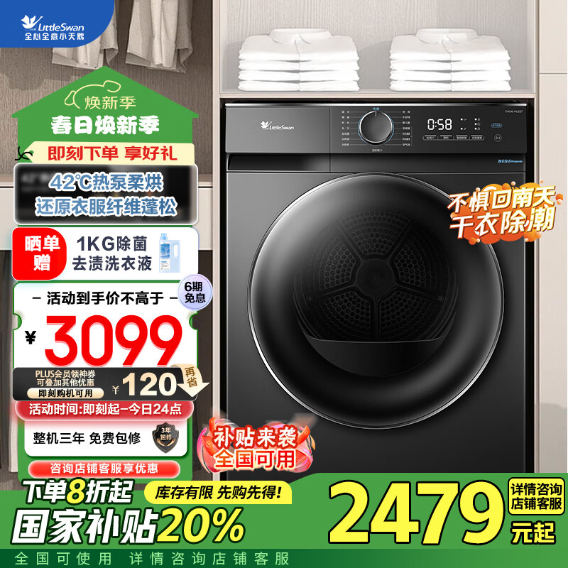 小天鹅(LittleSwan)10KG热泵烘干机 家用干衣机 AI正反转 祛味除螨除潮 回南天烘干机 超薄TH100-HL02T价格:3099.00元!