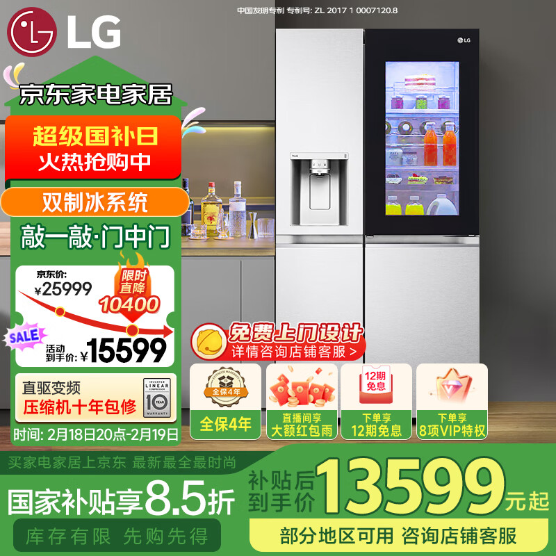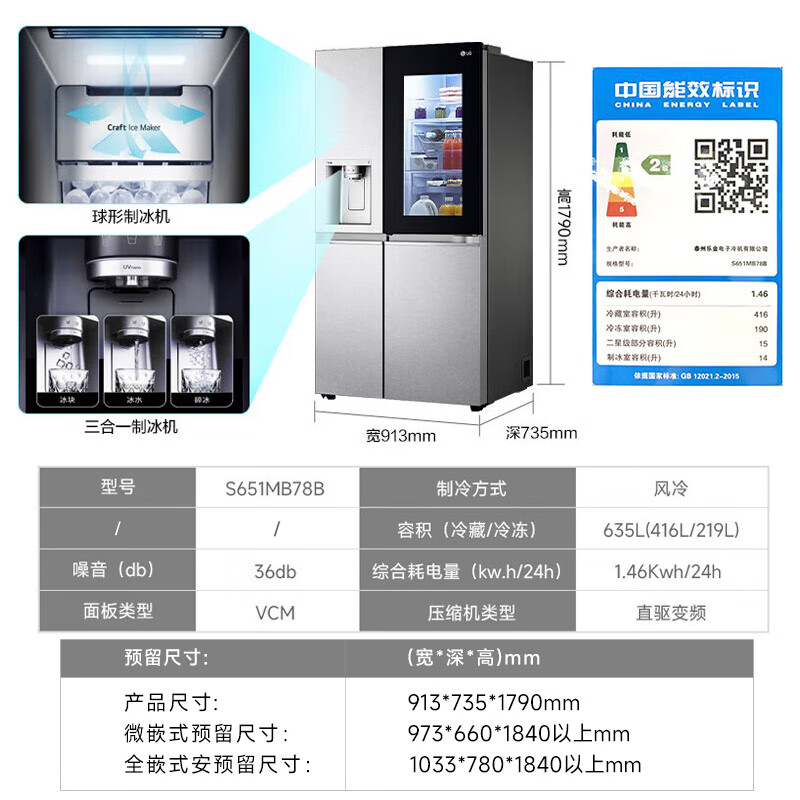 LG敲一敲635L双制冰系统冰箱制球形冰全自动家用电冰箱双开门抗菌净味补贴以旧换新S651MB78B价格:15599.00元!
