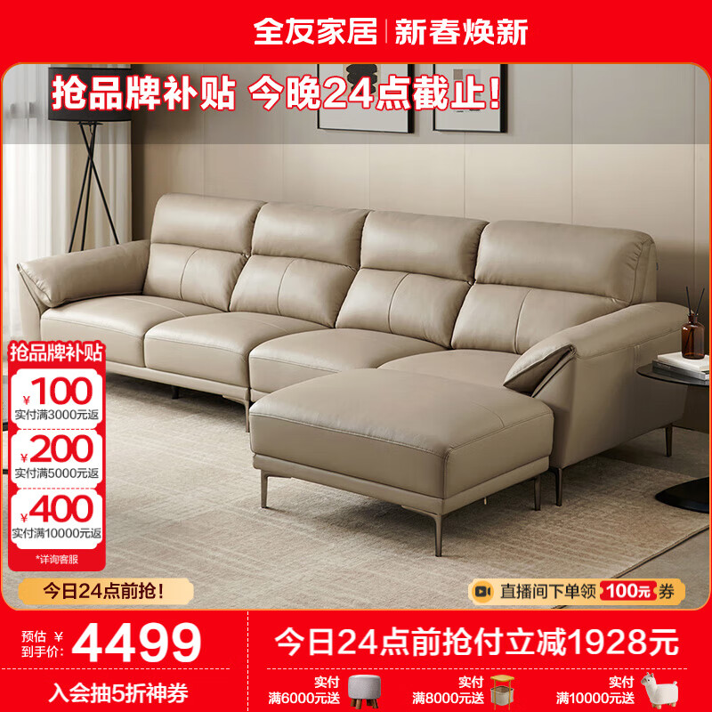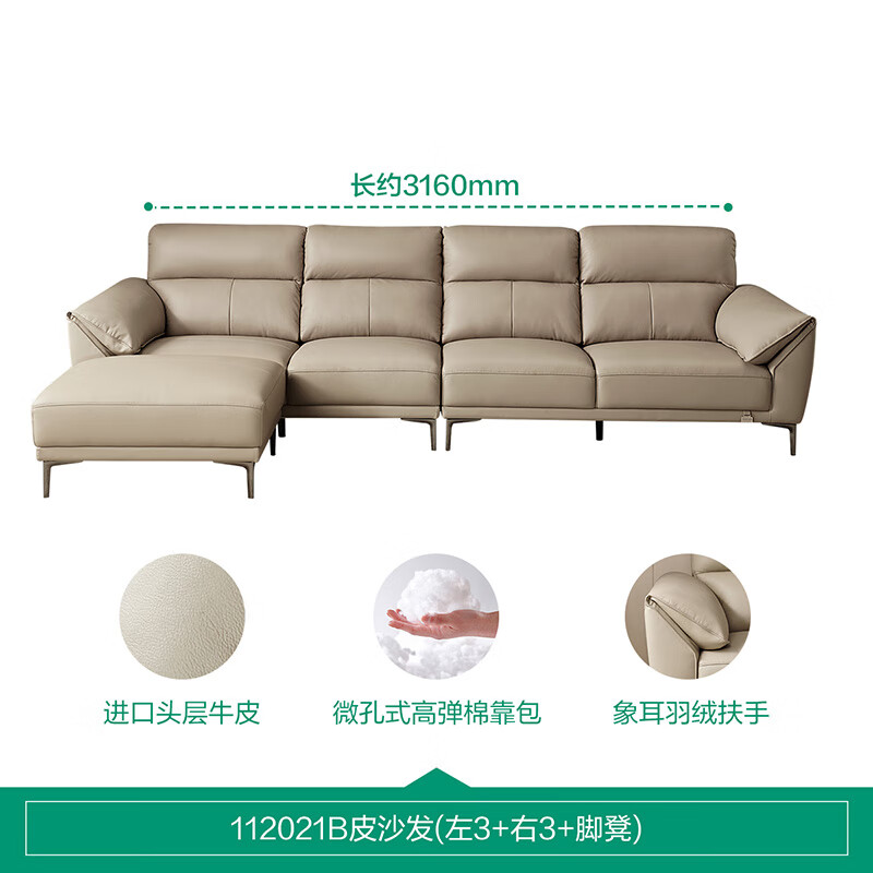 全友家居 现代简约头层牛皮直排大象耳朵大户型真皮艺沙发客厅112021价格:6427.14元!