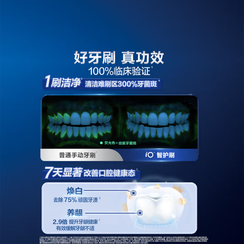 欧乐B成人电动牙刷iO7系智能可视深度清洁牙龈按摩家电补贴自营官方旗舰店热卖榜(新老包装随机)价格:969.00元!