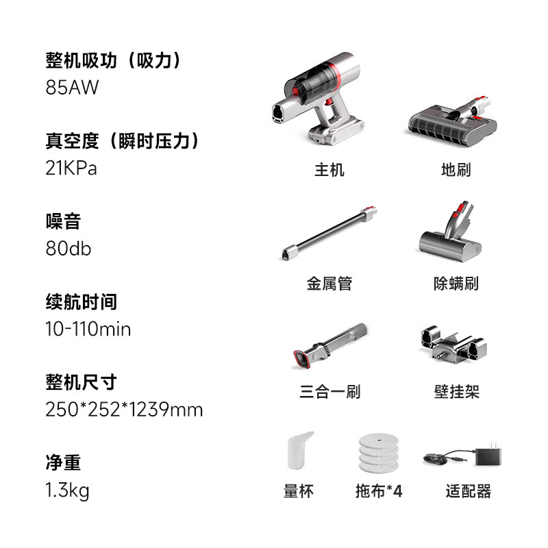 2、清洁效果:吸力大续航能力:插电的轻便程度:很轻,方便拆洗便捷度:很简单很方便特色功能:等赠品