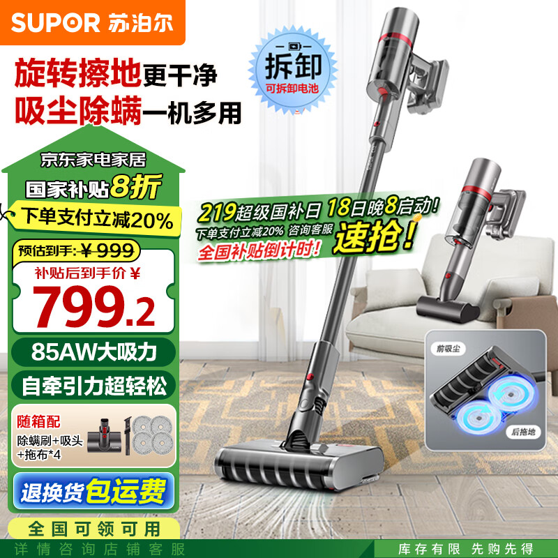 苏泊尔(SUPOR )手持无线吸尘器家用洗地机吸拖一体全自动大吸力拖地机电动拖把宠物家庭适用EVS-C12价格:999.00元!