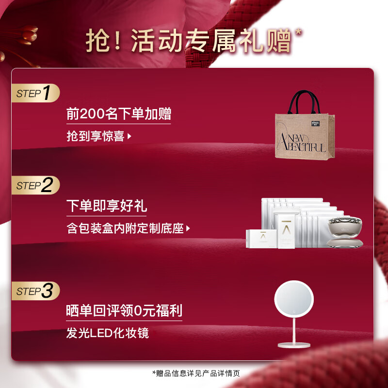 1、在众多美容仪品牌中研究了很久,之前购买过雅萌5代。正好赶上现在出了3代,毫不犹豫地就下单了。三代功能齐全,护肤-抗衰-清净等。包装是高大上的紫色,还有很多赠品,满满的幸福感!
