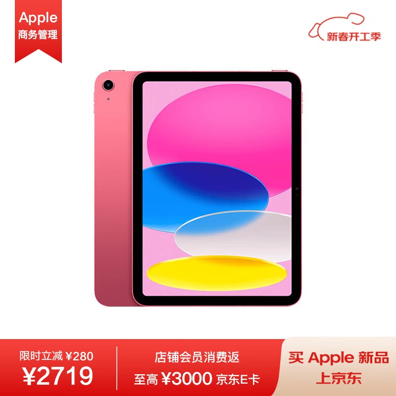 Apple iPad 10.9英寸平板电脑 2022年款(64GB WLAN版/A14芯片/1200万像素/iPadOS MPQ33CH/A)粉色*企业专享价格:2999.00元!