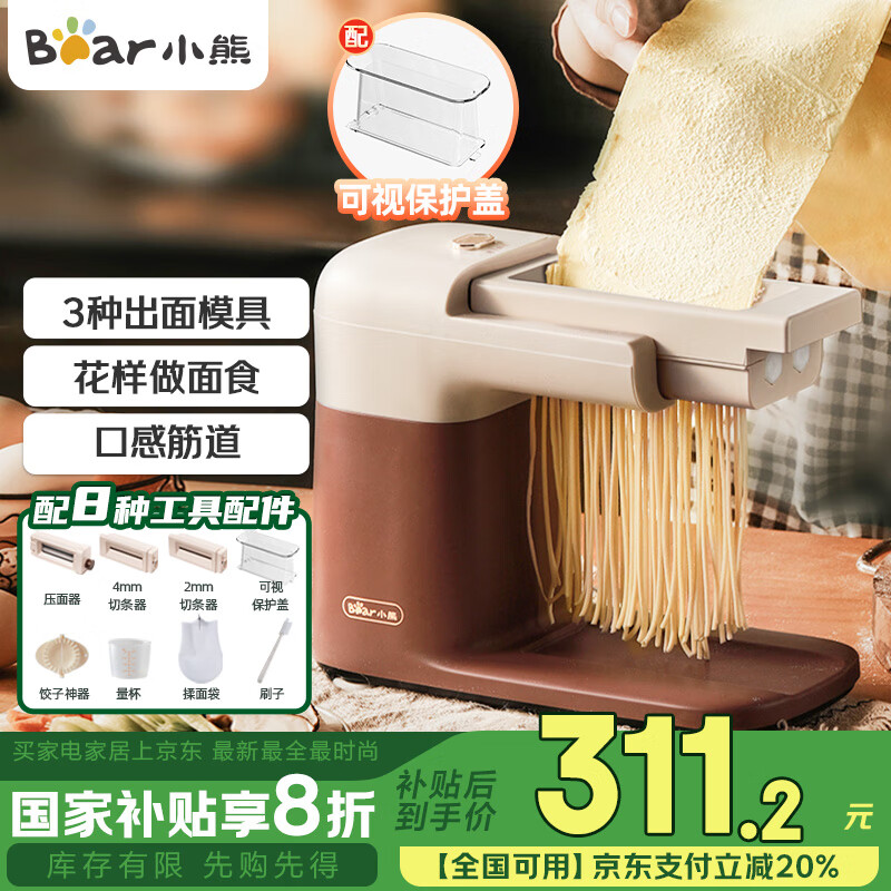 3、小熊的东西,做工很好,颜值很高,机器出面条很流畅,面条不错,618活动很给力,值得购买,性价比不错,比手动的省劲不少。还可以