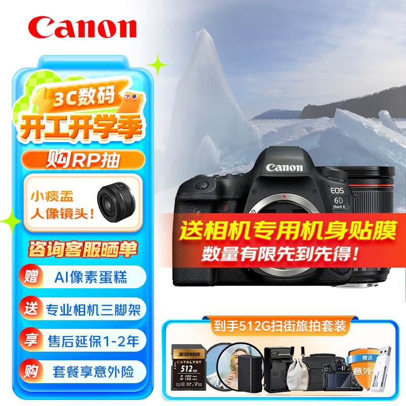 佳能(Canon)EOS 6D Mark II +EF 24-70mm F2.8 II USM 二代镜头 扫街旅拍套装价格:19999.00元!