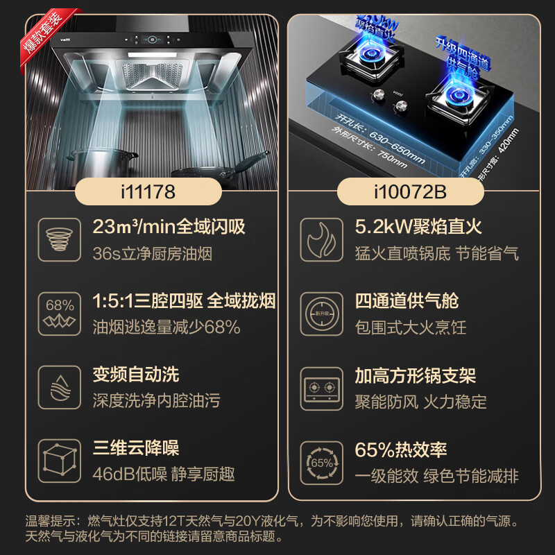 华帝(VATTI)抽油烟机油烟机燃气灶具消毒柜套装 家用厨房三件套 i11178+72B+13025(天然气)【套装商品】价格:3999.00元!