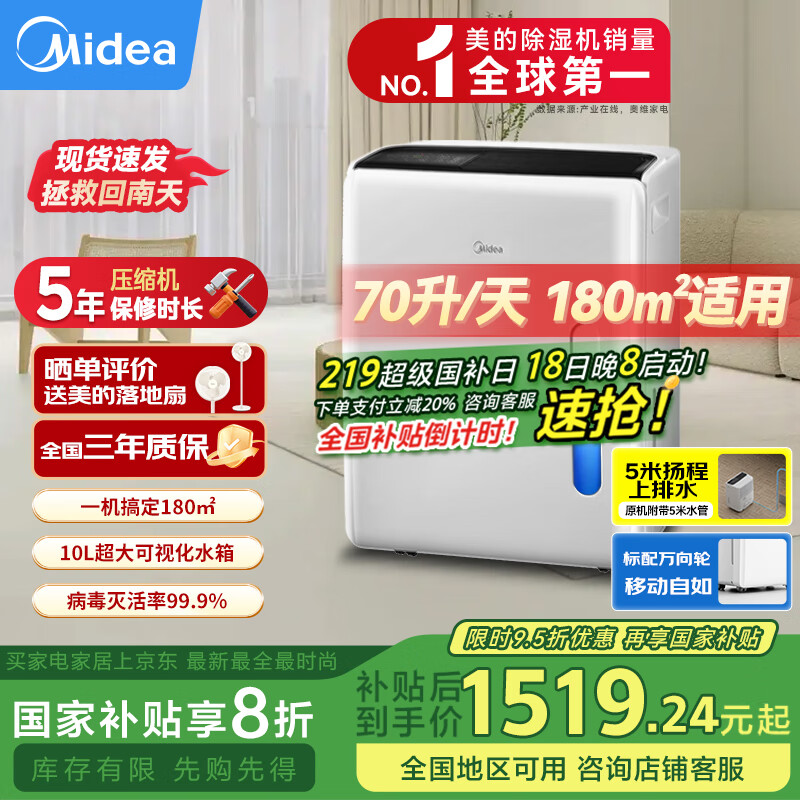不得不说的是美的CF70BD/N8-DL1,总体感觉还满意的,之前买了一个30L的,很好用,除湿效果很好,这次又回购了70L的,昨天下午拍的,今天上午就到货了,太给力了,东西看起来也很不错,准备楼上楼下用