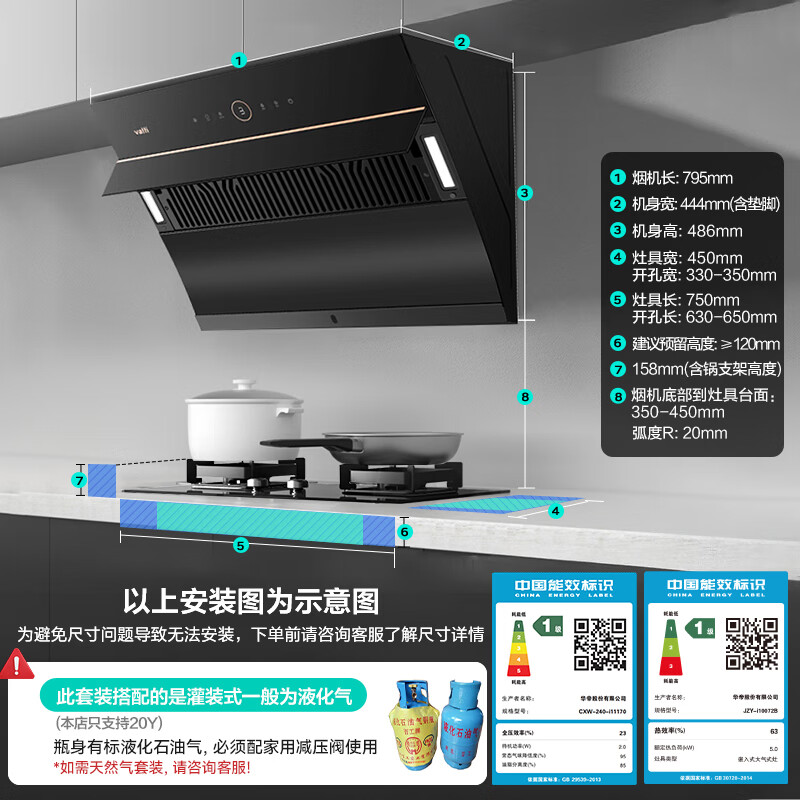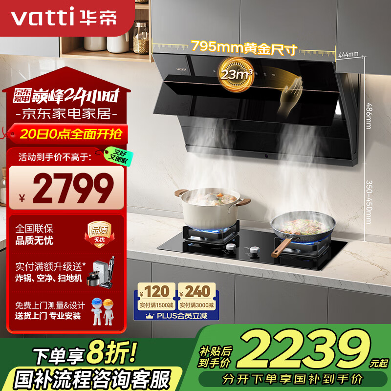 华帝(VATTI)抽油烟机家用大吸力小尺寸烟机燃气灶烟灶套装23风量自动清洗侧吸油烟机i11170液化气【套装商品】价格:2799.00元!