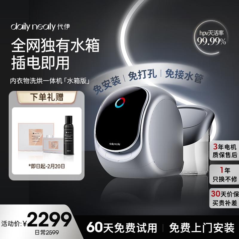daily neaty内衣洗衣机 洗烘一体 内裤洗衣机 内衣裤洗衣机洗内裤机滚筒 全智能 水箱版2代 免安装价格:2299.00元!