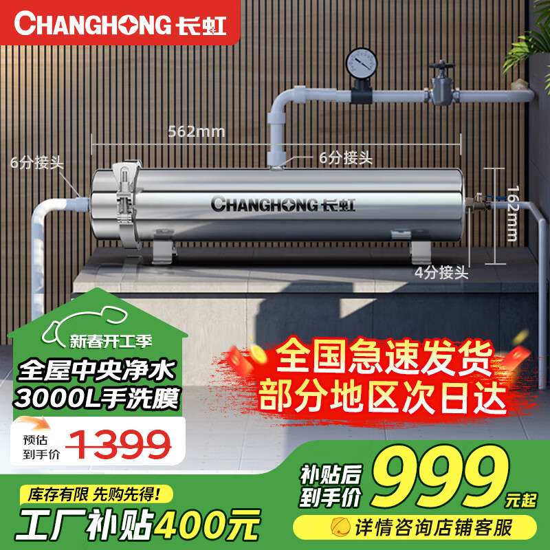 长虹(CHANGHONG)全屋中央管道净水器家用直饮超滤净水机前置农村井水别墅自来水过滤器大流量商用 【3000L大流量】满足全屋过滤价格:1399.00元!
