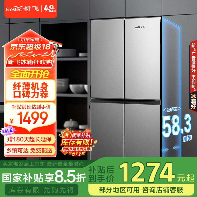 新飞(Frestec)382升 超薄十字对开多门电冰箱 精细存储一体照明炫彩空间 补贴15% BCD-382LT8EH价格:1549.00元!