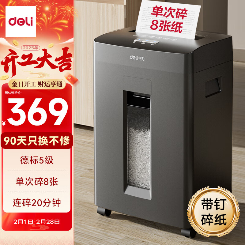 得力碎纸机 5级高保密商务办公大型家用办公室文件粉碎机 单次8张 连碎20分钟 23L可视容量GA510价格:399.00元!