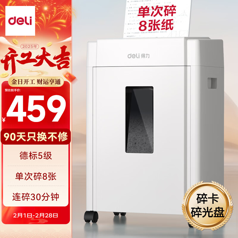 得力5级保密碎纸机商务办公家用商用大型碎纸机 文件粉碎机 碎光盘 单次8张 23L 30分钟 33040价格:489.00元!
