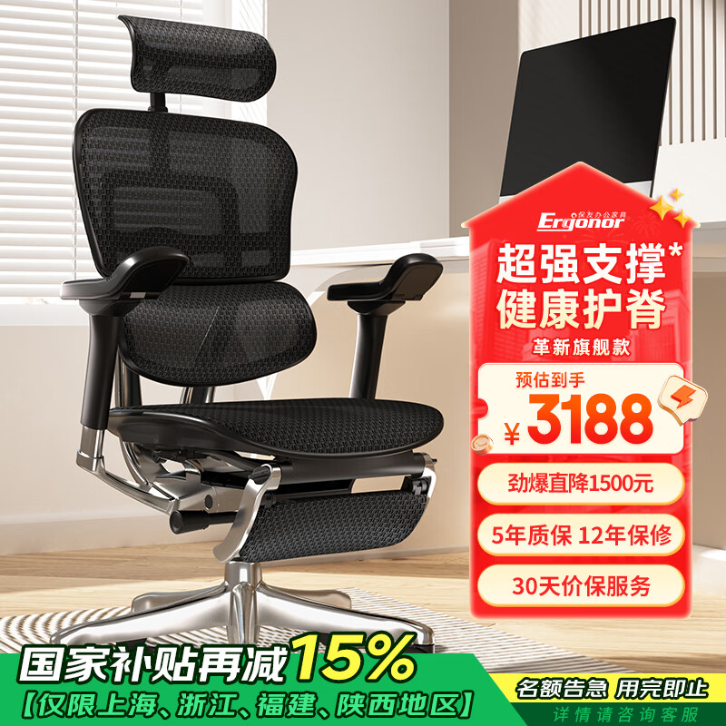 Ergonor保友金豪e2代高端人体工学椅电脑椅办公椅电竞椅子 黑色网+躺舒宝价格:4688.00元!