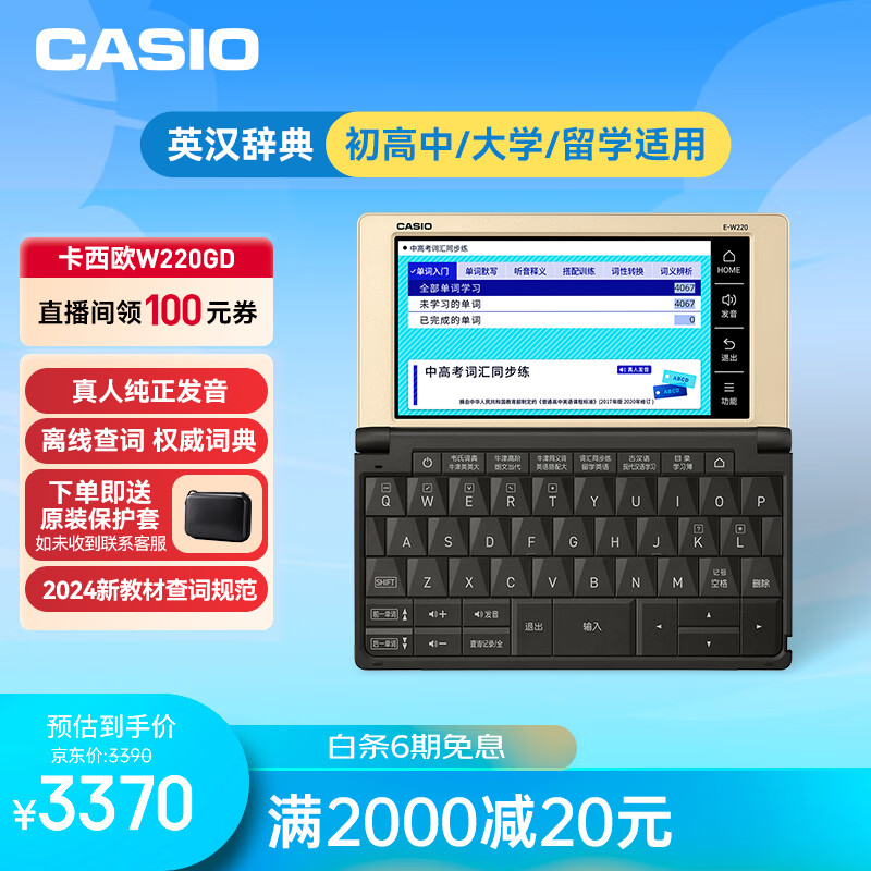 卡西欧(CASIO)卡西欧电子词典 E-W220GD2024新教材英汉牛津英语电子词典大学生 中高考词汇拓展单词学习机香槟金价格:3390.00元!
