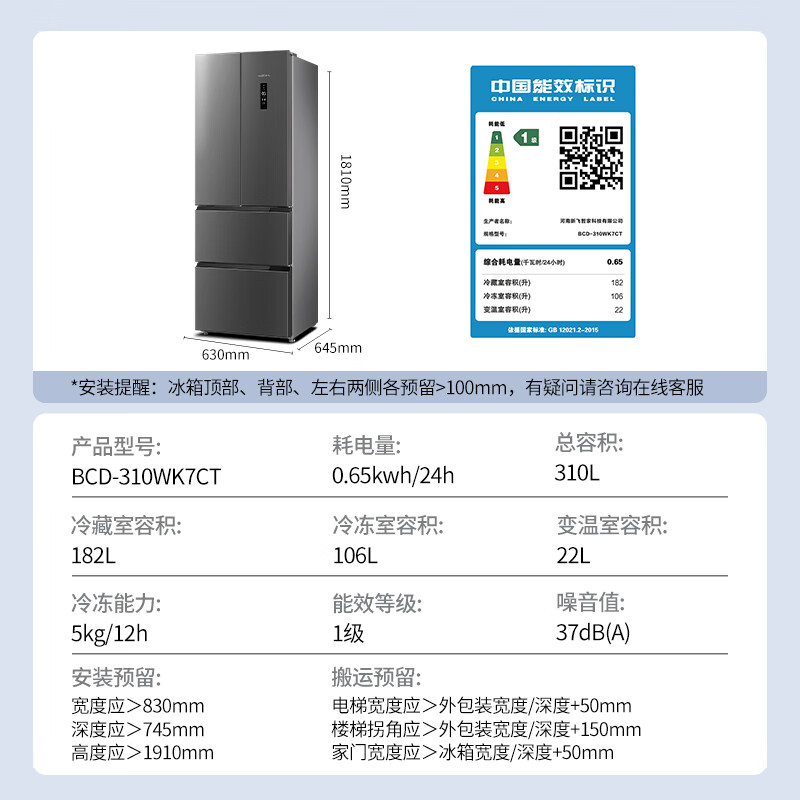 真的要说新飞BCD-310WK7CT外观我比较的喜欢,质量非常的好,外形外观:大气,就是颜色太深,不太适合家居制冷效果:杠杠的保鲜效果:好容量大小:够大,对比之前的不到200升,空间很多