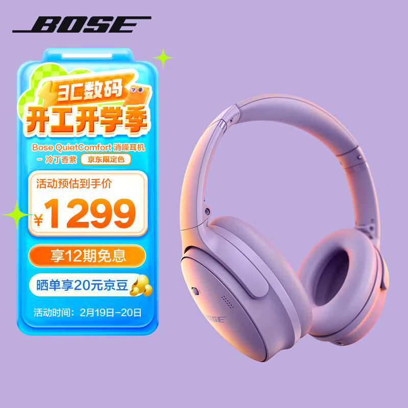 Bose QuietComfort消噪耳机 – 冷丁香紫 头戴式无线蓝牙降噪 QC45升级款 风噪滤除新体验价格:1299.00元!